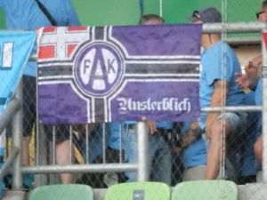 Pokuta za rasistické správanie opäť spočíva vo vyvesení vlajky v C-sektore. Tentoraz sa jedná o nasledovnú vlajku (viď. foto nižšie). Bol na nej vyobrazený symbol, ktorý zástupcovia UEFA vyhodnotili ako tzv. ´Totenkopf´(symbol jednotiek SS počas druhej svetovej vojny) a slogan ´Mojou cťou je vernosť´, ktorý bol taktiež používaný jednotkami SS počas druhej svetovej vojny. Z tohto dôvodu bola vlajka príčinou postihu klubu podľa článku 14 Disciplinárneho poriadku UEFA. Aj v tomto prípade žiadame fanúšikov, aby do budúcna túto vlajku nevnášali na žiaden z našich zápasov. Klub ako organizátor zápasov bude v tomto smere samozrejme tiež podnikať konkrétne kroky, aby sa nič podobné neopakovalo.