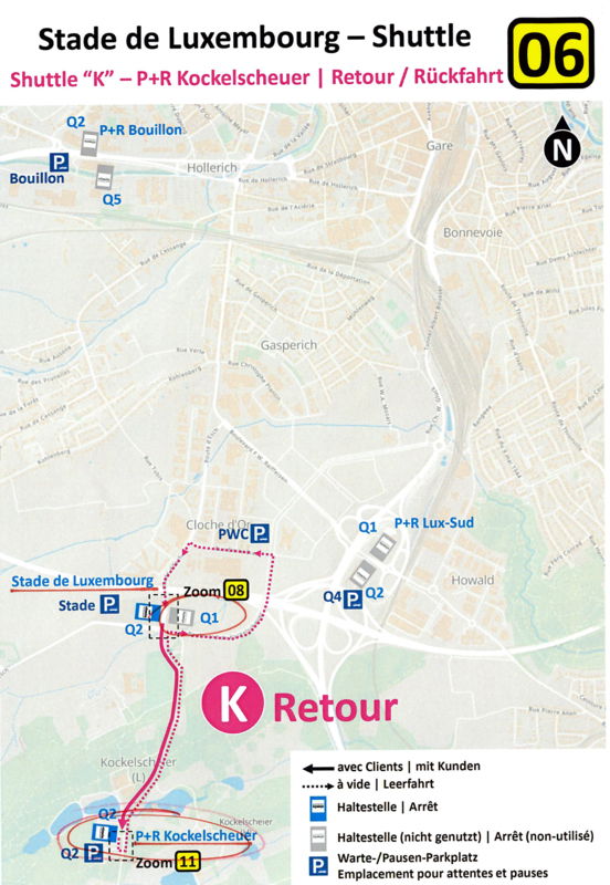 Na mapke si môžete pozrieť miesto stretnutia pre fanúšikov Slovana a následnú trasu na presun na štadión Stade de Luxembourg. Presun MHD je zdarma.