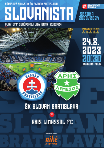 V aktuálnom vydaní zápasového bulletinu SLOVANISTA nájdete rozhovor s Davidom Strelcom i predstavenie Aris Limassol, nášho dnešného súpera. Bulletin si môžete bezplatne stiahnuť a prečítať vo svojom počítači či smartfóne, v papierovej podobe bude k dispozícii na bufetoch.
