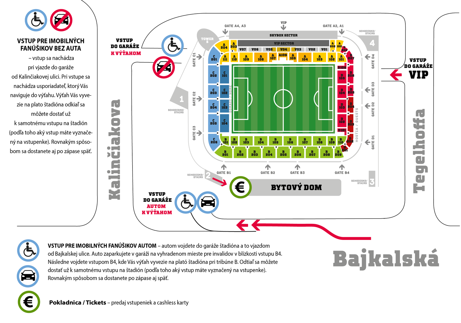 Plán navigácie pre imobilných fanúšikov: pozrite TU.